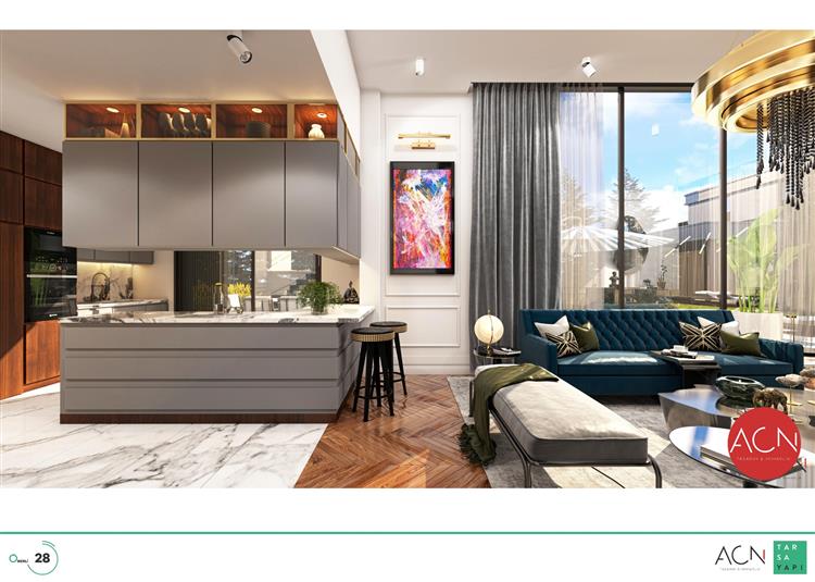 İç mimari proje için beklentilere göre özgün bir konsept oluşturuldu ve el eskizleriyle mekânsal kurguda kullanılacak ürünler ve renk kombinasyonları belirlendi. Alınan rölöve sonrasında proje 2D formatta çizilerek ilk aşamada oluşturulan fikir eskizlerinde oluşturulan mekânsal kurguya uygun bir biçimde 2D formata, planlar, görünüşler, kesitler, malzeme detayları ile birlikte aktarıldı.
